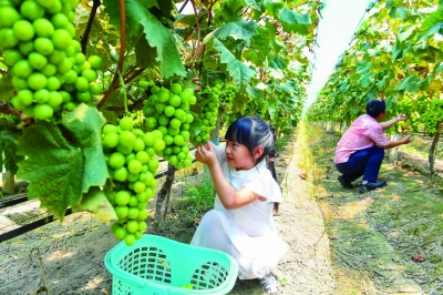 近日,江北新区盘城街道葡萄园里一派丰收景象,吸引游客前来体验采摘乐趣。 孙中元 摄
