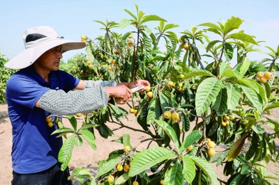 28日,果农在八卦洲外沙村果园采摘白玉枇杷准备上市。徐琦 摄