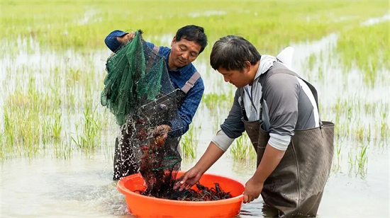 走进位于阳江镇西北部淳京飞农产品种植专业合作社的“稻虾轮作”基地,水面波光粼粼,水下小龙虾自在游弋,水面上则是即将收割的水稻。这种“一水两用、一田双收”的生态模式,让负责人刘北京尝到了甜头。