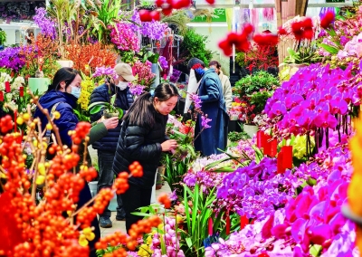 15日,许多市民在汉中门鲜花批发市场选购年宵花。临近春节,南京市各大花卉市场纷纷备足货源,满足节日市场需求。