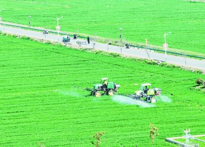 4月18日,农作物进入田间管理的关键时期,在龙袍街道赵坝村的田野中,春风轻拂,麦浪翻滚,农业植保无人机、多功能自走式喷雾机等农业设备纷纷“上岗”,让传统的春耕变得更加“智慧”“高科技”,田间地头尽显崭新气象。图为多功能自走式喷雾机。