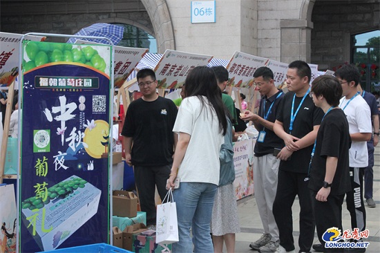 “阳光玫瑰特别甜,颗粒饱满,也非常新鲜。”集市摊位前还可以免费试吃,不少消费者纷纷驻足试吃其阳光玫瑰、盐水鸭等产品,并现场下单预定中秋节日礼品。此外,活动现场还布置了游戏区,设置了投壶互动游戏,得到了消费者的积极参与。