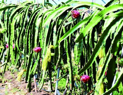 高淳区桠溪街道的沐缘家庭农场种植的火龙果。张可 摄