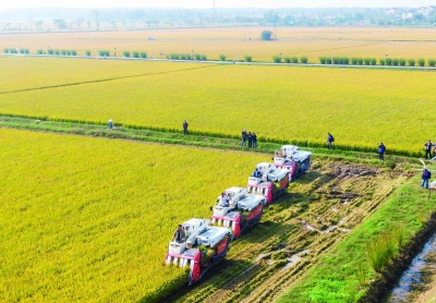 秋收接近尾声,南京市都市现代农业产业示范园核心片区的溧水区和凤镇吴村桥村省级水稻绿色高质高效示范区正在抓紧抢收。