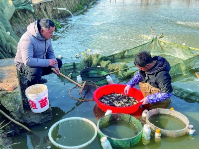 10日,高淳区古柏街道的淡水鱼养殖基地内,养殖户抢抓时节,起捕培育的鳊鱼、草鱼、青鱼、鲢鱼、鮰鱼等品种鱼苗,供应省内外及本地养殖区春季放养。