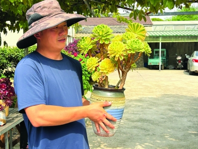 起初,他把父母家的庭院当作试验田,精心打造出一个迷你植物王国。一盆盆多肉生机勃勃,绿意盎然,让人忍不住驻足欣赏。为了种好多肉,朱青青没少下功夫。他先后奔赴昆明、武汉、台州等地考察学习,回来后结合本地土壤、气候条件,不断改良种植方法,从多肉新手成长为不折不扣的种植能手。