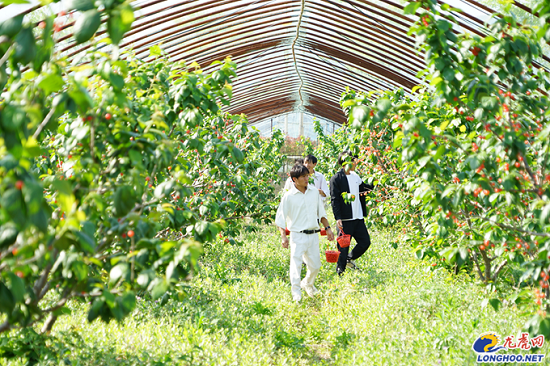 “我们种了30多亩的樱桃,从修枝、施肥到除虫都精心呵护着,亩产约500-600斤。如今迎来全盛采摘季,‘五一’期间会更红更甜,采摘季自4月20日到5月10日结束。欢迎各位游客前来游玩,体验樱桃采摘的乐趣。”石全家庭农场负责人王道全说。