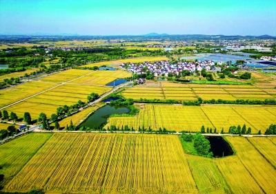 5月13日,桠溪都市现代农业产业示范园区内,3万多亩小麦长势喜人,麦穗金黄灿烂,宛如金色海洋,丰收在望。