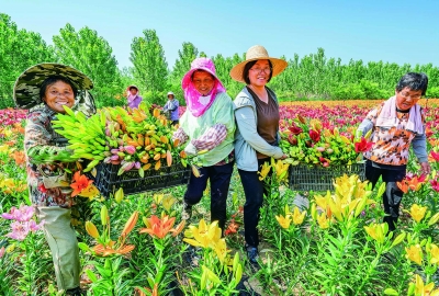 近日,溧水区石湫街道焦赞石村百合花种植基地内,村民忙着采收食用百合。近年来,该村大力发展花经济,百合不仅用于加工销售,还吸引游客,带动周边农家乐、民宿增收,走出特色致富路。