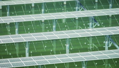 江苏省重点能源项目六合区程桥街道100MW渔光互补项目主体光伏方阵区。董家训 摄