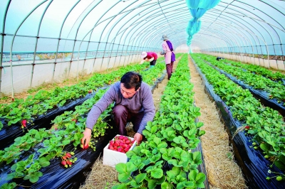 12月4日,高淳区桠溪都市现代农业产业园的果蔬大棚内,新品种香野草莓陆续成熟并进入采摘期。该草莓又名“隋珠”,果形饱满、色红味甜带蜜香,采摘期将持续至明年4月,亩产约2500公斤。段仁虎 摄