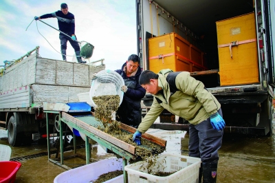 近日,南京高淳区东圩村万亩青虾迎来上市旺季,虾农抢抓时节分拣、交易。鲜活青虾经冷链物流,销往上海、湖南等全国各地,以特色水产产业拓宽销售渠道,带动当地农户稳定增收。 高晓平 摄